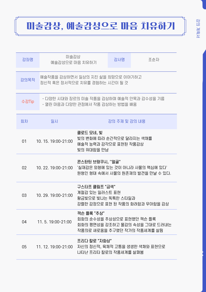 • [10월] 미술감상 예술감성으로 마음치유하기