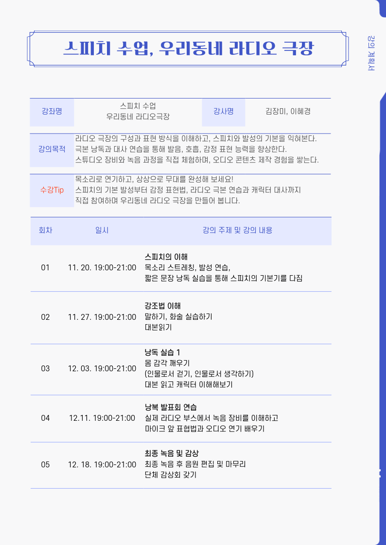 • [11월-12월] 스피치 수업 우리동네 라디오 극장