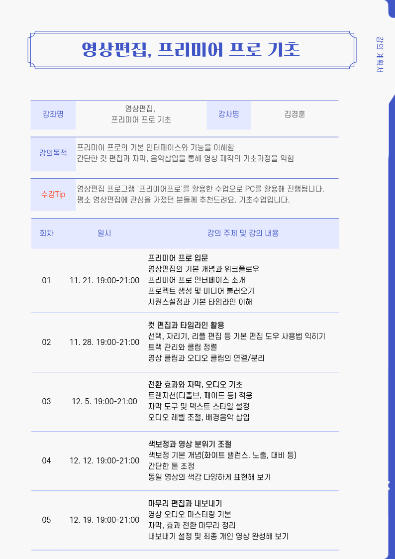 • [11월-12월] 영상편집 프리미어 프로 기초