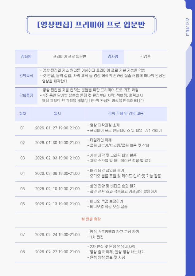 • [1월-2월] 영상편집 프리미어 프로 입문반