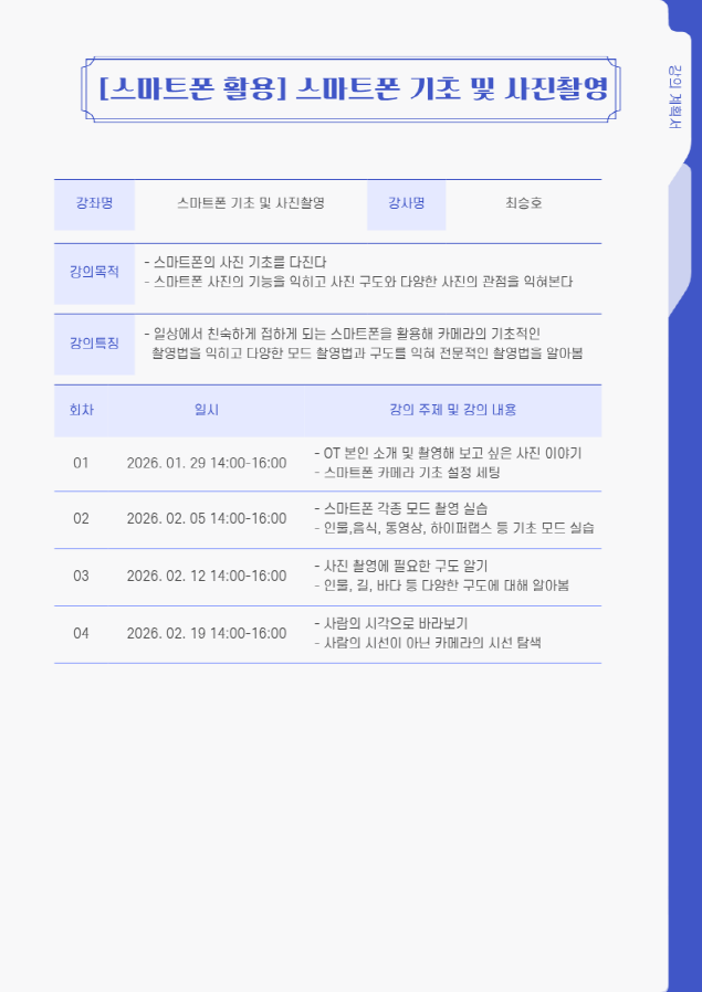 [1월-2월] 스마트폰 기초 및 스마트폰 사진 촬영