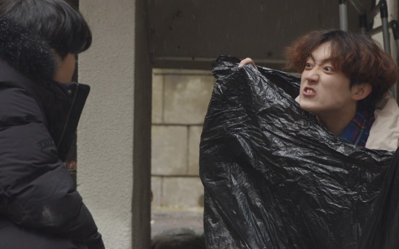 마치 무엇인가에 홀린 듯 쓰레기 봉투 안으로 들어가는 사람들.