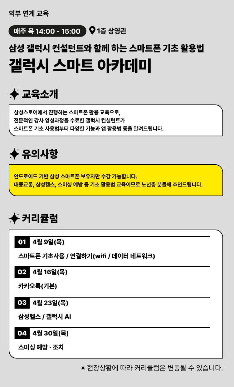 - 2026-04-09 ~ 2026-04-30 매주 목 14:00 - 16:00
