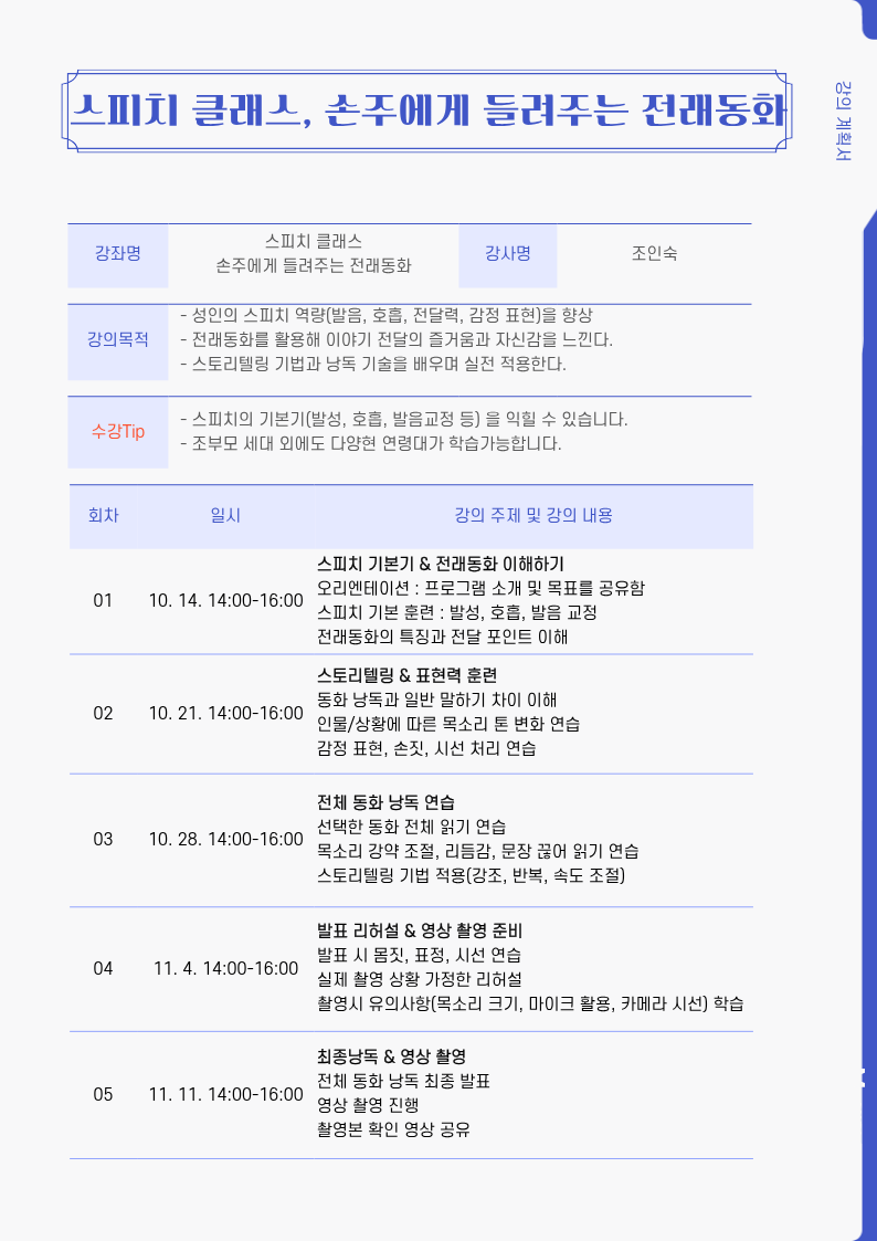 • [10월] 스피치 클래스 손주에게 들려주는 전래동화
