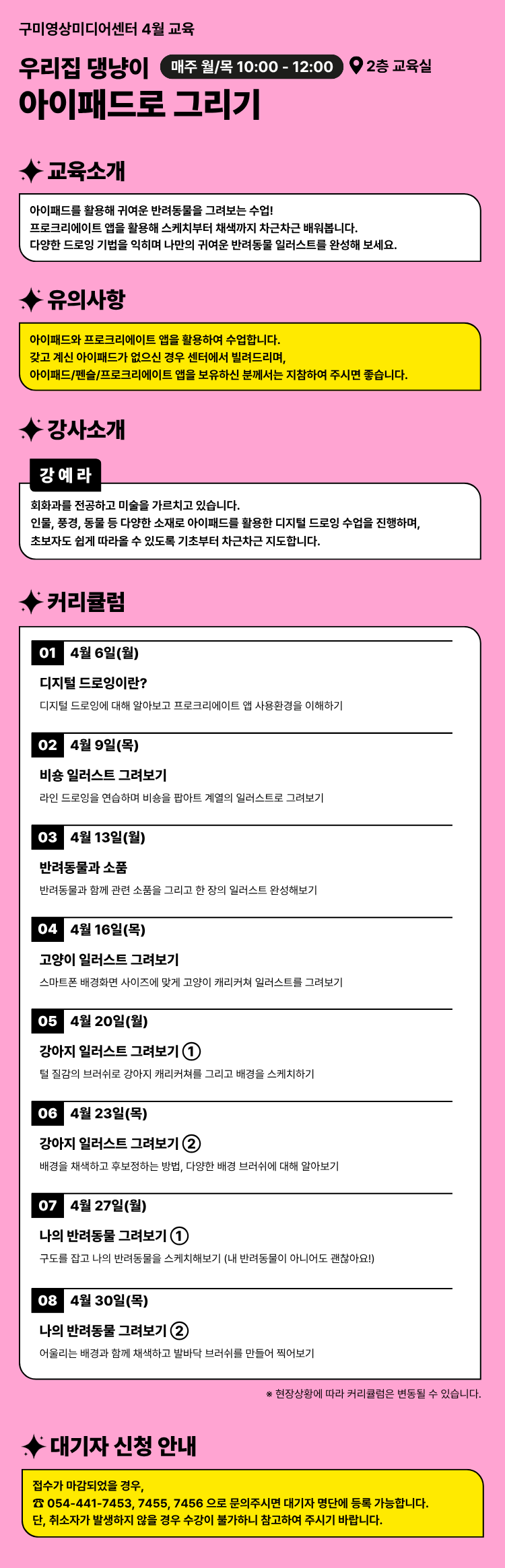 - 2026-04-06 ~ 2026-04-30 매주 월/목 10:00 - 12:00